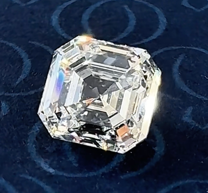 Near colorless asscher cut diamond with beautiful VS2 clarity.