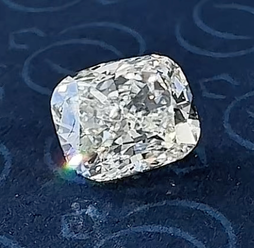 Beautiful faint yellow cushion cut diamond with VS2 clarity.