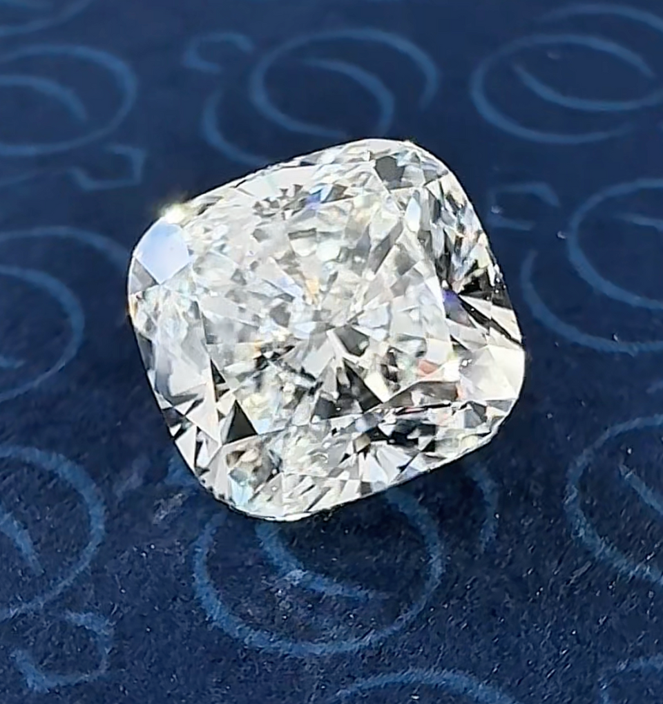 Beautiful! Near colorless cushion cut diamond with gorgeous VS1 clarity.